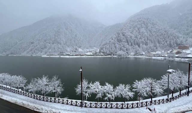 Trabzon'un Çaykara ilçesinde bulunan dünyaca ünlü turizm merkezi Uzungöl nisan ayında yağan karla beyaza büründü, kartpostallık görüntüler ortaya çıktı.
