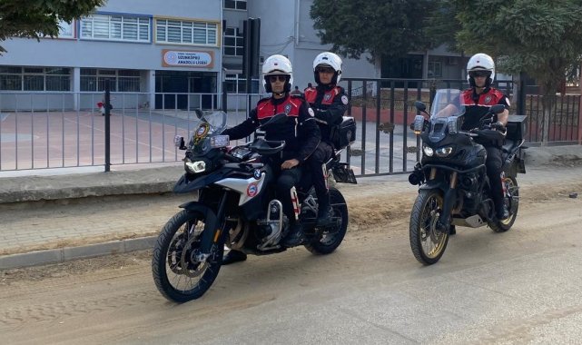 Edirne'nin Uzunköprü ilçesinde göreve başlayan motosikletli Yunus timleri, okul çevrelerinde öğrencilerin güvenliğini sağladı.