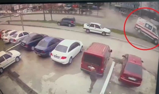Samsun'un Çarşamba ilçesi Samsun-Ordu Karayolu'nda meydana gelen kazaya ait güvenlik kamerası görüntülerinde, vakaya gitmekte olan ambulansın orta şeritte ilerleyen fındık yüklü kamyona arkadan çarptığı görülüyor. Çarpmanın etkisiyle kontrolden çıkan ambulansın savrularak yol kenarındaki ağaca çarptığı anlar saniye saniye kaydedildi.