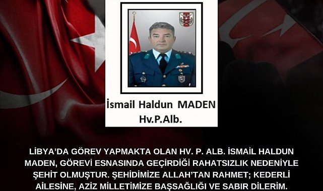 Üzücü haberi Milli Savunma Bakanlığı duyurdu. Yapılan açıklamada, Libya'da görev yapmakta olan Hava Pilot Albay İsmail Haldun Maden'in geçirdiği kalp krizi geçirdiği ve kaldırıldığı hastanede yapılan tüm müdahalelere rağmen kurtarılamayarak şehit olduğu belirtildi. Eskişehir Valisi Hüseyin Aksoy, şehit için bir taziye mesajı yayımladı. Vali Aksoy'un mesajında, "Şehidimize Allah'tan rahmet; kederli ailesine, aziz milletimize başsağlığı ve sabır dilerim" ifadelerine yer verdi.
