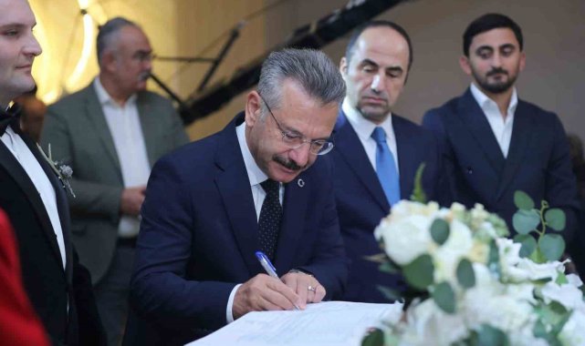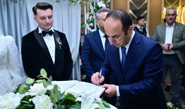 Eskişehir Valisi Hüseyin Aksoy, dünyaevine giren polis çiftin nikah şahitliğini yaptı.