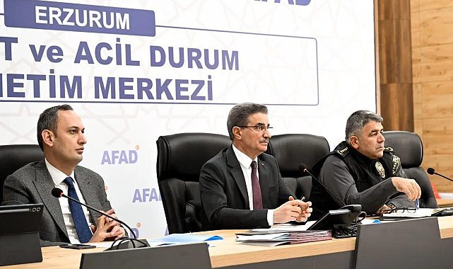 Erzurum'u iki gündür etkisi altına alan yoğun kar yağışı nedeniyle, Vali Aydın Baruş başkanlığında İl Afet ve Acil Durum Yönetim Merkezi'nde değerlendirme toplantısı gerçekleştirildi.