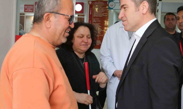 Bakan, karşılaştığı hastane personeli görme engelli çiftle de sohbet etti.