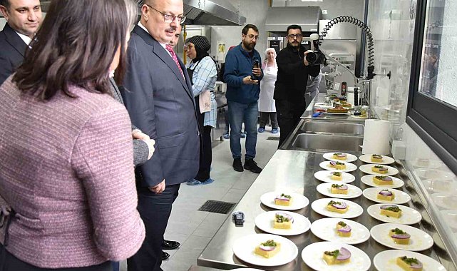 Projenin eğitim koordinatörü Yiyecek İçecek Öğretmeni Düriye Gönen Kaya, öğretmenler ve kursiyerler Mutfak Akademisinde üretilen yiyecekler misafirlerine ikram etti. İkramlar arasında yer alan, coğrafi işaret süreci devam eden Balat Baklasından yapılan Pava yemeği hakkında da bilgiler verdi.