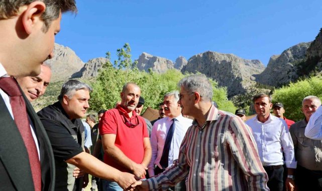 Niğde Valisi Cahit Çelik, Çamardı ilçesine bağlı Çukurbağ Köyü'nde gerçekleştirilen toplantının ardından Aladağlar Milli Parkı sınırlarında yer alan Emli Vadisi'nde incelemelerde bulundu.