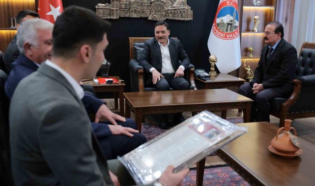 Kayseri Valisi Gökmen Çiçek; İl Kültür ve Turizm Müdürü Şükrü Dursun ve beraberindeki heyeti makamında kabul etti.