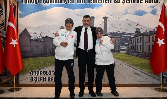 Erzurum Valisi Mustafa Çiftçi, Erzurum Bölge Adliye Mahkemesi Cumhuriyet Başsavcısı Sayın Ünal Bingül ile Virtüs 2025 Özel Sporcular Dünya Şampiyonası'nda ülkemizi başarıyla temsil eden kıymetli evlatları Aliye Zeynep Bingül ve Muhsin Murat Bingül'ü makamında kabul etti.