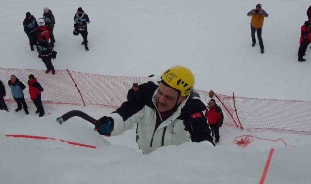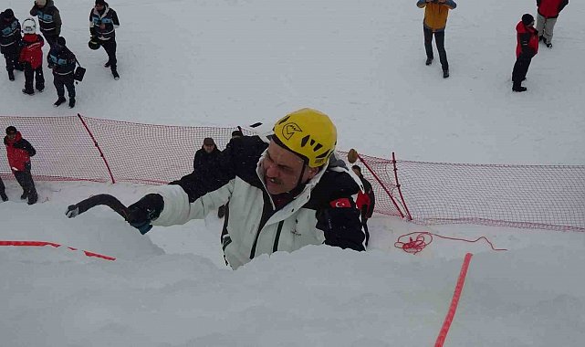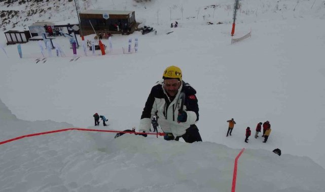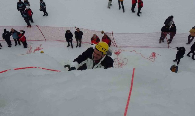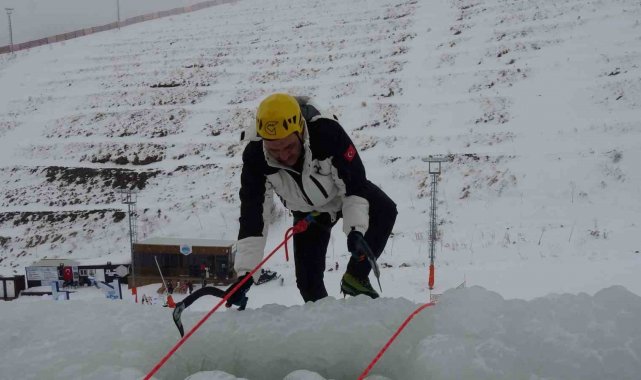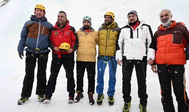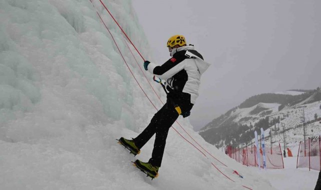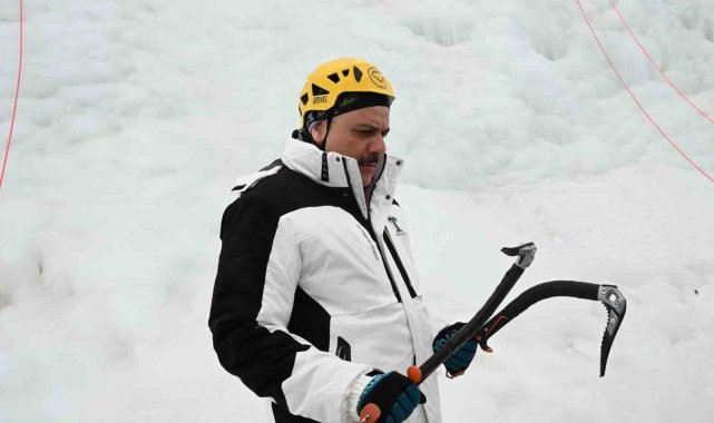 Erzurum Valisi Mustafa Çiftçi, Palandöken Kayak Merkezi'nde yapılan yapay buz duvarına tırmandı.