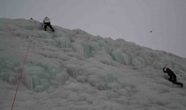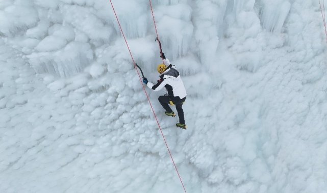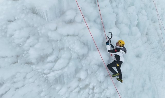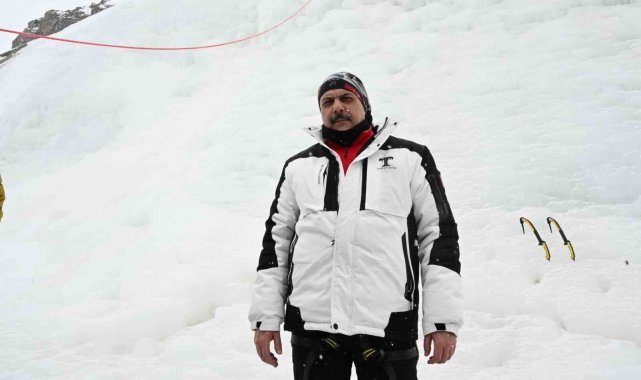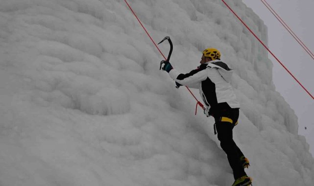Vali Çiftçi, yapay buz duvarına tırmandı