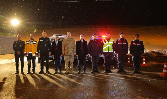 Bayburt Valisi Mustafa Eldivan, 2025 yılının son saatlerinde İl Jandarma Komutanlığı ile Jandarma Yol Kontrol ve Trafik Uygulama noktalarında görevli ekipleri ziyaret ederek, yeni yıl dileklerini iletti.