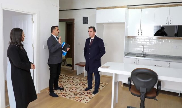 Aşevi ziyareti sonrası Sosyal Yardımlaşma ve Dayanışma Vakfına ait kadın ve erkek refakatçi evini de ziyaret eden Vali Karakaya, Vakıf Müdürü Mesut Gültekin'den misafirhane hakkında bilgi aldı.