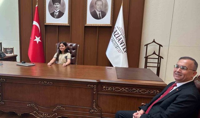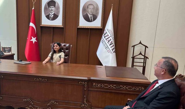 Gaziantep Valisi Kemal Çeber, 23 Nisan Ulusal Egemenlik ve Çocuk Bayramı nedeniyle bir günlüğüne koltuğunu 4'üncü sınıf öğrencisi Eylül Lina Yıldız'a devretti.