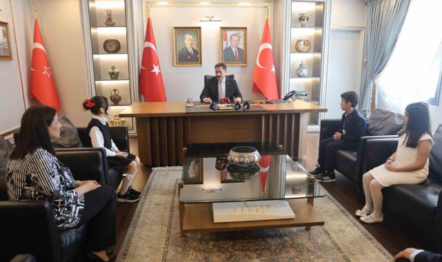 Ziyarette; okul müdürü Ahmet Çiyce, öğretmen Nilgün Sözer, 10 yaşındaki Ayşe Berrak Karacan ve 10 yaşındaki Elif Türkan Yıldırım yer aldı.