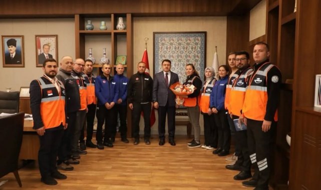 Kütahya İl Afet ve Acil Durum Müdürü İsmail Özkan, Destek AFAD gönüllüleri ve AFAD personeliyle birlikte Kütahya Valisi Musa Işın'ı makamında ziyaret etti.