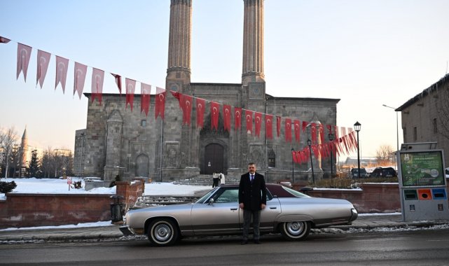 Erzurum Valisi Mustafa Çiftçi, merhum Alparslan Türkeş'in de kullandığı 1973 model koleksiyonluk araçla Erzurum sokaklarını turladı.
