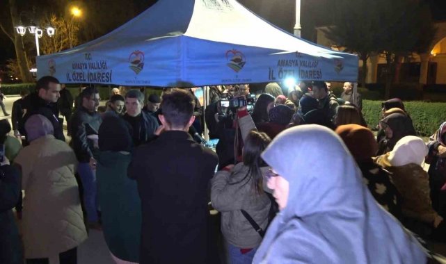 Amasya Valisi Önder Bakan, teravih namazı çıkışı cami bahçesinde vatandaşlara ve kütüphanede ders çalışan gençlere simit ile ayran dağıttı.