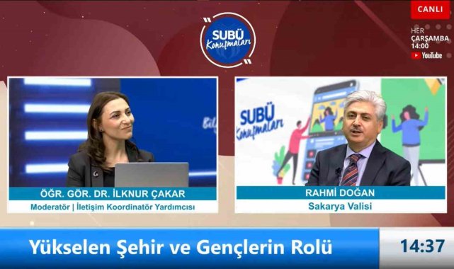 Sakarya Uygulamalı Bilimler Üniversitesi (SUBÜ) tarafından düzenlenen SUBÜ Konuşmaları'nın 108'nci konuşmacısı, 'Yükselen Şehir ve Gençlerin Rolü' konulu söyleyişiyle Sakarya Valisi Rahmi Doğan oldu. Moderatörlüğünü İletişim Koordinatör Yardımcısı Öğretim Görevlisi Dr. İlknur Çakar'ın üstlendiği söyleşide; Sakarya'nın öğrenciler için sunduğu avantajlar, öğrencilerin şehirle güçlü bağlar kurabilmesi için planlanan kültürel ve sosyal projeler, afet yönetiminde hedeflenen dönüşümler ile yerel yönetimlerin ve üniversitelerin rolü ele alındı.