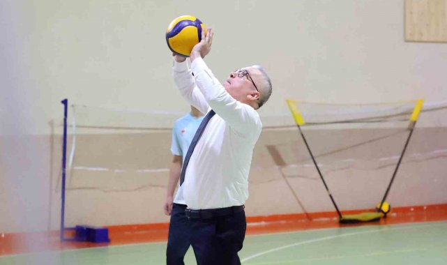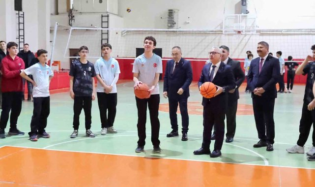 Spor malzemesi dağıtım programına katılan Vali Şimşek, öğrencilerle basketbol ve voleybol oynayarak gençlerin heyecanına ortak oldu.