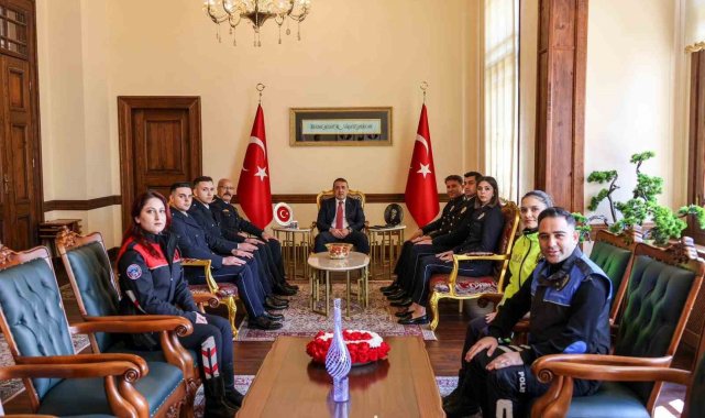 İl Emniyet Müdürü Erdem Çağlar, Polis Meslek Eğitim Merkezi Müdürü Harun Çil ile beraberindeki teşkilat mensupları ve polis adayları, Vali Faik Oktay Sözer tarafından kabul edildi. Valilik makamında gerçekleşen kabulde, Türk Polis Teşkilatı'nın köklü geçmişi, kamu düzeninin sağlanmasındaki etkin rolü ve toplum huzuruna sunduğu katkılar ele alındı. Vali Sözer, milletimizin huzur ve güvenliği için büyük bir özveriyle görev yapan emniyet teşkilatının çalışmalarını takdirle karşıladığını ifade etti.