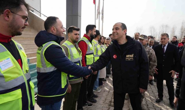 Kahramanmaraş merkezli 6 Şubat depremlerinin yıl dönümünde Iğdır AFAD önündeki fotoğraf sergisini gezen Vali M. Fırat Taşolar, afet ekipmanlarını inceledi ve Iğdır'ın en küçük AFAD gönüllüsü Poyraz Ege ile bir araya geldi.