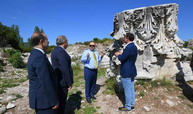 Balıkesir Valisi İsmail Ustaoğlu, Erdek ilçesinde bulunan Kyzikos Antik Kenti'ni ziyaret ederek, yürütülen kazı çalışmaları hakkında bilgi aldı.