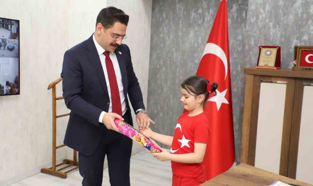 Hakkari Vali Yardımcısı ve Belediye Başkan Yardımcısı Vekili Tayyar Emre Mahmutoğlu, 23 Nisan Ulusal Egemenlik ve Çocuk Bayramı etkinlikleri kapsamında İstiklal Marşı'nı en iyi şekilde okuyan 6 yaşındaki Jinda Özkan'ı makamında kabul etti.