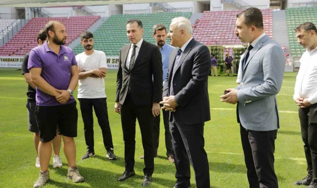 Diyarbakır Valisi Murat Zorluoğlu, zemin yenileme çalışmaları devam eden Diyarbakır Stadyumu'nda incelemelerde bulundu.