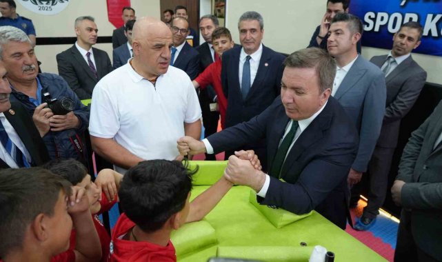 Otlukbeli ile Çayırlı Değer Erzincan Spor kulüplerinin açılışlarına katılan Vali Hamza Aydoğdu, genç sporcularla bilek güreşi tuttu.