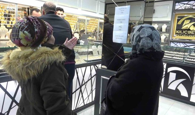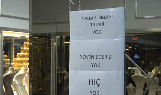 "Vallahi billahi yok, yemin ederim yok" yazısına rağmen müşterilerin ısrarı sürerken, esnaf ile vatandaşlar arasında gülümseten diyaloglar yaşandı. Bir müşterinin "Bir gram da mı yok?" sorusuna kuyumcunun "Yok abi, olsa kendime ayırırım" dediği anlar kameraya yansıdı.