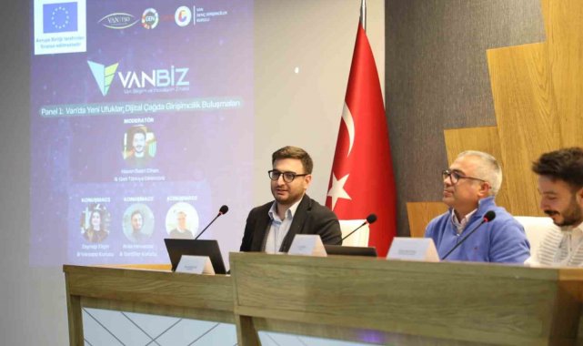 VANBİZ Programı; Doç Dr. Levent Ersin Orallı'nın AB'nin Dijital Dönüşüm Stratejileri ve Türkiye'deki Genç ve Kadın Girişimcilere Açılan Kapılar Paneli, GEN Türkiye Direktörü Hasan Basri Cihan moderatörlüğünde Sertifier Kurucusu Arda Helvacılar, Ono Kurucusu Tunç Erman ve Warsapp Kurucusu Zeynep Eliçin'in "Van'da yeni ufuklar: Dijital Çağda Girişimcilik Buluşmaları" paneli ile devam etti.