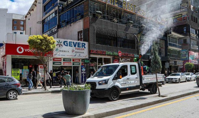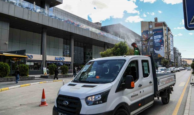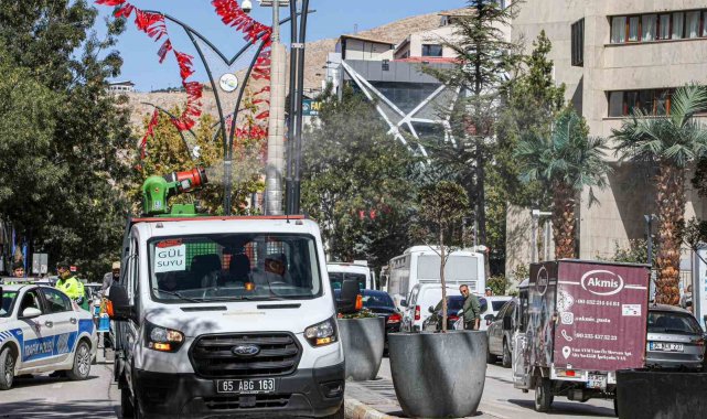 Van Büyükşehir Belediyesi kent merkezindeki cadde ve sokaklara gül suyu sıktı.