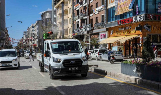 Van Büyükşehir Belediyesi caddelere gül suyu sıktı