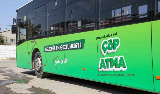 Van Büyükşehir Belediyesi, toplumda farkındalık oluşturmak amacıyla bünyesindeki toplu ulaşım araçlarında 'çevre duyarlı' temalı çalışma yaptı. Yeşil büründürülen otobüslerde çevre temizliği ile alakalı mesajlar da yer alıyor.