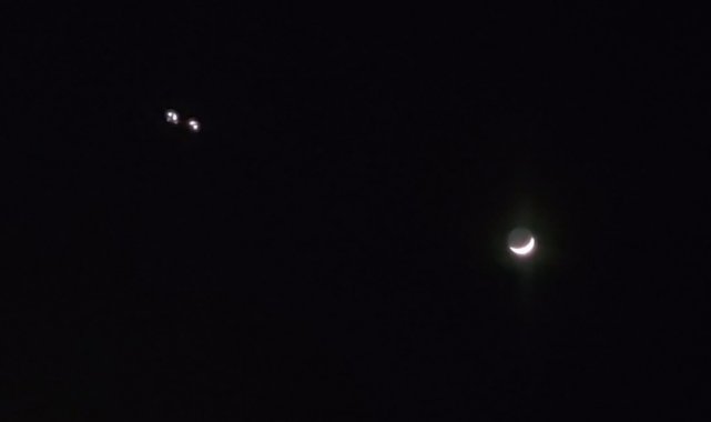 Van'da 2026 yılının ilk hilal ayı, akşam saatlerinde gökyüzünde beliren zarif görüntüsüyle görsel şölen oluşturdu. Gün batımının ardından batı ufkunda ince bir yay şeklinde görünen hilal, önünden geçen uçaklarla güzel manzaraların ortaya çıkmasına neden oldu.