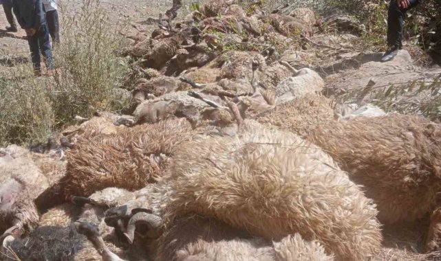 Van'ın Çatak ilçesinde meydana gelen olayda, bir sürüye ait 334 koyun kayalıklardan düşerek telef oldu.