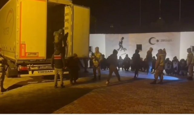 Van'ın Muradiye ilçesinde jandarma ekipleri tarafından bir tırda 69 düzensiz göçmen ile 5 organizatör yakalandı.