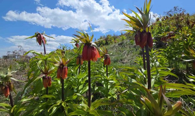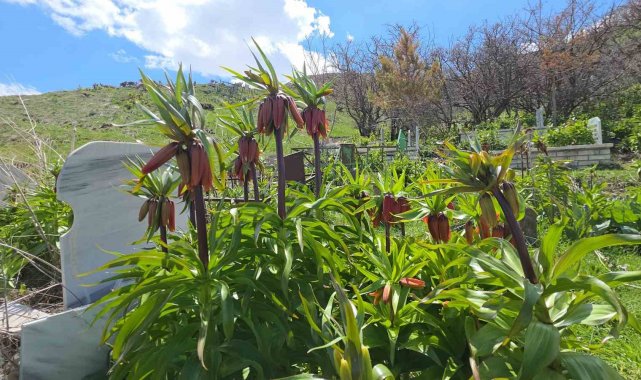 Van'ın Gevaş ilçesindeki yetişen ve halk arasında "ağlayan gelin" veya "hüzün çiçeği" diye bilinen ters laleler güzellikleriyle doğayı renklendiriyor.
