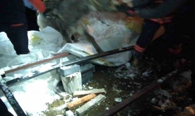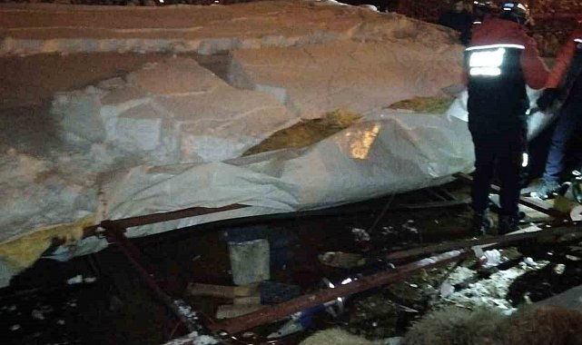 Van'ın Edremit ilçesinde karın ağırlığına dayanamayan ahırın çökmesi sonucu 5 küçükbaş hayvan telef oldu.