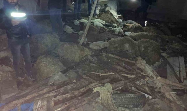 Van'ın Gürpınar ilçesinde ahırın çökmesi sonucu 56 küçükbaş hayvan telef olurken, 1 inek de enkazın altından yaralı olarak kurtarıldı.