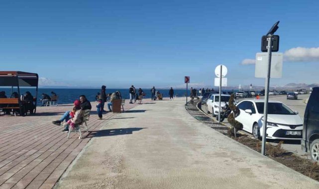 Van'da dondurucu kış şartlarının ardından yüzünü gösteren güneşli hava, hayatı canlandırdı. Şubat ayının ortasında termometrelerin mevsim normallerinin üzerine çıkmasını fırsat bilen Vanlılar, soluğu Van Gölü kıyısında aldı.