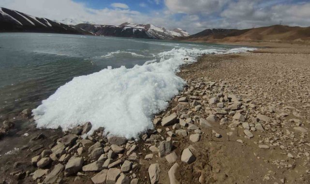 Sibirya soğuklarının hakim olduğu Van'da Zernek Barajı'ndaki dalgalar donarak kristalleşti. Ortaya çıkan manzara görsel şölen sundu.