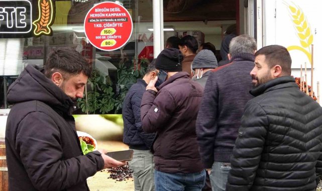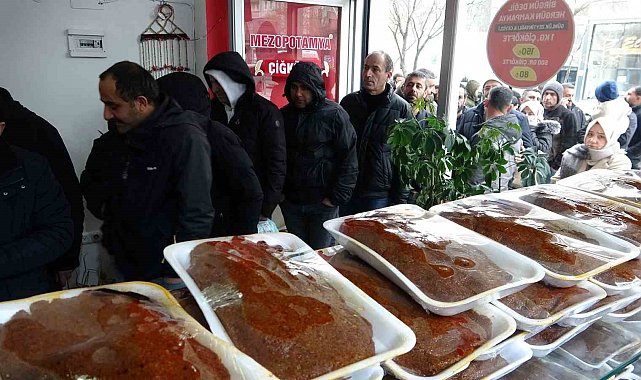 Van'da iftar sofralarının vazgeçilmezi çiğ köfteye rağbet uzun kuyruklar oluşturdu.