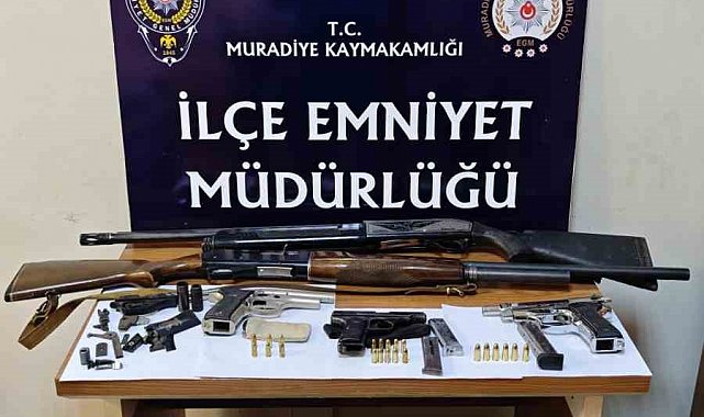 Muradiye ilçesi Kandahar Mahallesi'nde, Muradiye Sulh Ceza Hâkimliğinin arama ve el koyma kararı doğrultusunda Muradiye İlçe Emniyet Müdürlüğü ekipleri tarafından operasyon gerçekleştirildi. Operasyon kapsamında yapılan aramalarda; 2 adet yivsiz av tüfeği, 83 adet dolu av tüfeği kartuşu, 3 adet tabanca, 22 adet dolu tabanca fişeği ve tabanca yapımında kullanılan çeşitli parçalar ele geçirildi. Operasyon kapsamında M.M.K. isimli şüpheli gözaltına alındı. Konuya ilişkin adli ve idari işlemlerin başlatıldığı belirtildi.