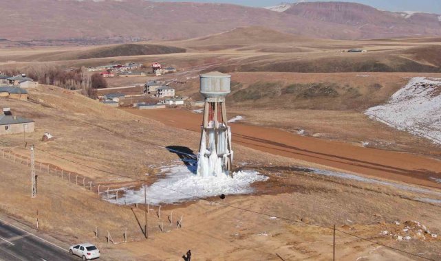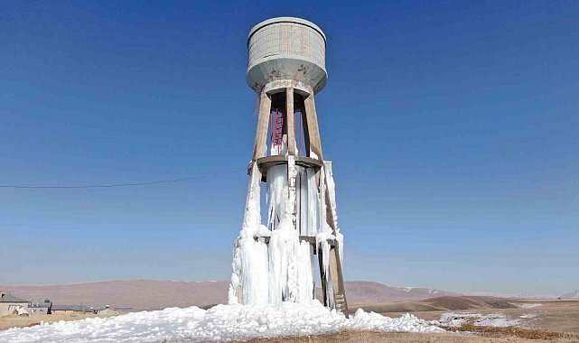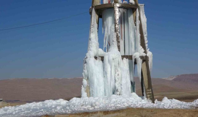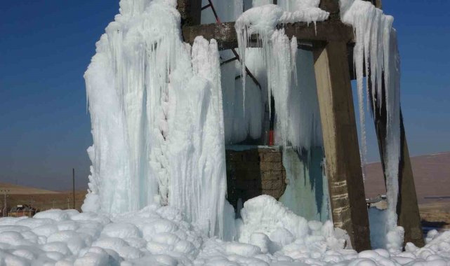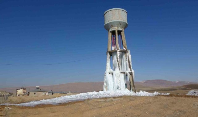 Van'da etkisini sürdüren dondurucu soğuklar nedeniyle su deposu buz tuttu.