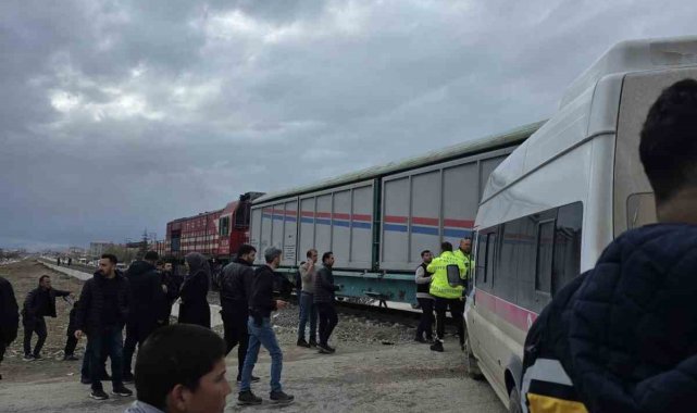 Van'ın Tuşba ilçesinde hemzemin geçitte tren ile okul servisi çarpıştı. Faciadan dönülen kaza maddi hasarla atlatıldı.