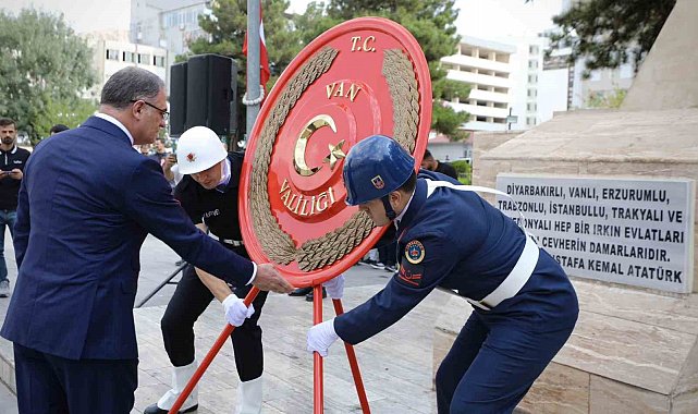 Van Valiliği bahçesinde düzenlenen törende; Vali Ozan Balcı valilik çelengini, Van 6. Hudut Tugay Komutanı Tuğgeneral Ümit Çelik garnizon komutanlığı çelengini, Muharip Gaziler Derneği Başkanı Cafer Oğur ise dernek çelengini Atatürk anıtına sundu. Saygı duruşu ve İstiklal Marşı'nın okunmasının ardından yapılan konuşmalarla devam eden program, Vali Balcı ve beraberindeki protokol üyelerinin Muharip Gaziler Derneğini ziyaretiyle son buldu.