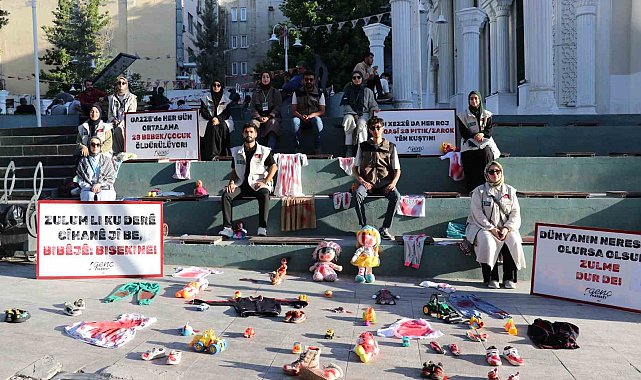İsrail'in Gazze'de yaklaşık 18 bin çocuk ve bebeği öldürdüğüne dikkat çeken Atiş, "Biz de onları temsil etsin diye hem oyuncak bebekleri hem çocuk kıyafetlerini kullandık. Amacımız orada yaşanan zulümleri ve katliamları tekrar hatırlatmaktır. Çünkü şöyle bir gerçek var. Ne kadar unutursak o kadar bununla hemhal olmaya doğru yol gider. Bugün bize yapılmıyor olabilir fakat yarın öbür gün aynısı başımıza gelmeyecek anlamına da gelmiyor. Tabi toplumsal bilinç oluşmazsa, ezilmeniz daha kolay olur. Biz de bu yaptığımız sergi ile beraber bu toplumsal bilinci oluşturmayı ve dünyanın neresinde olursa olsun zulme sessiz kalmamayı amaçlıyoruz" ifadelerini kullandı.