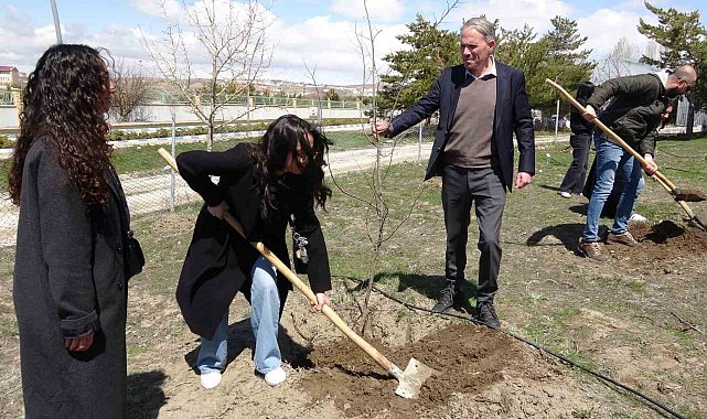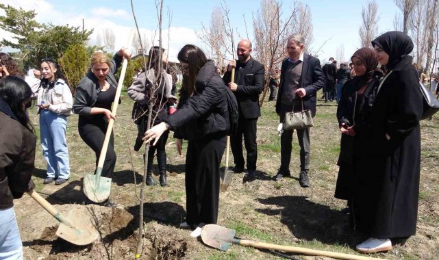 Van Yüzüncü Yıl Üniversitesi (Van YYÜ) yerleşkesinde 100 öğrencinin katıldığı etkinlikte yerel meyve fidanları toprakla buluşturuldu.