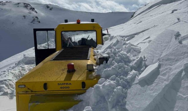 Van'ın Başkale ilçesinde yol açma çalışması sırasında iş makinesinin üzerine çığ düştü. İş makinesi operatörü araçtan kendini atarak son anda kurtuldu.