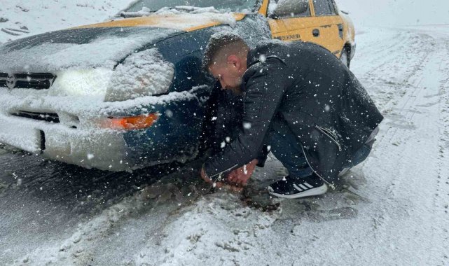 Van-Başkale kara yolunda etkili olan kar yağışından dolayı sürücüler 2 bin 730 rakımlı Güzeldere Geçidi'nde zor anlar yaşadı.